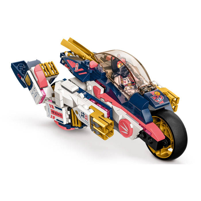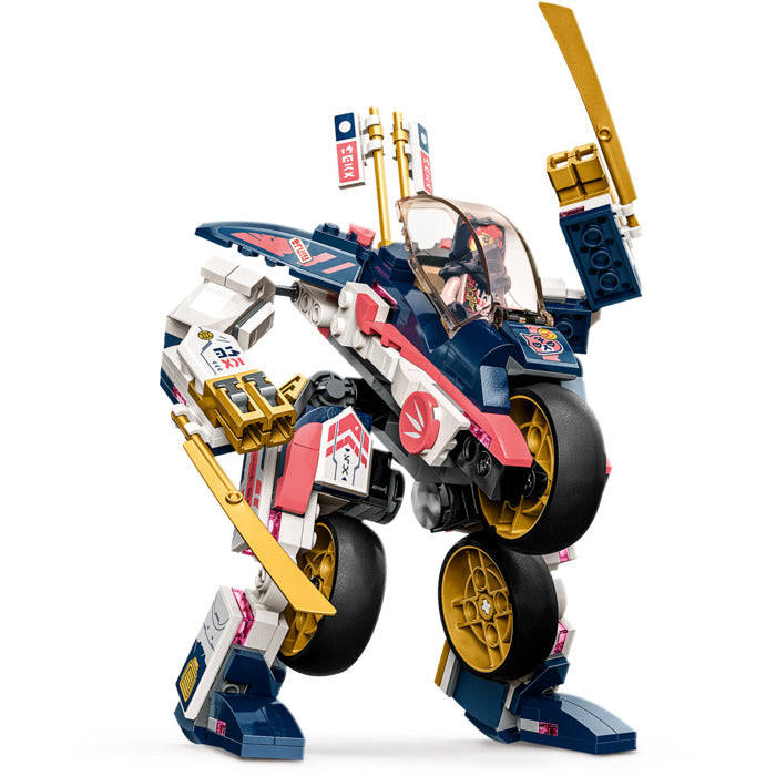 Team up with brave ninja students Sora and Arin to keep Baby Riyu out of the clutches of the evil dragon hunter Rapton! Jump in the mech’s cockpit before transforming it into a souped-up bike to enter a high-speed chase with Rapton on his glider. Watch out as he fires his shooters and wields his Imperium sword! You must win this race to protect the new NINJAGO® world! Are you up to the challenge?